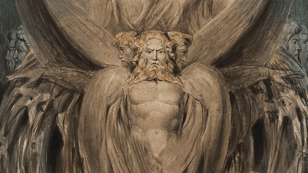 Ezekiel describes it in this way using the image of a chariot comprised of wheels within a wheel and Cherubim who have multiple heads that look in all directions: